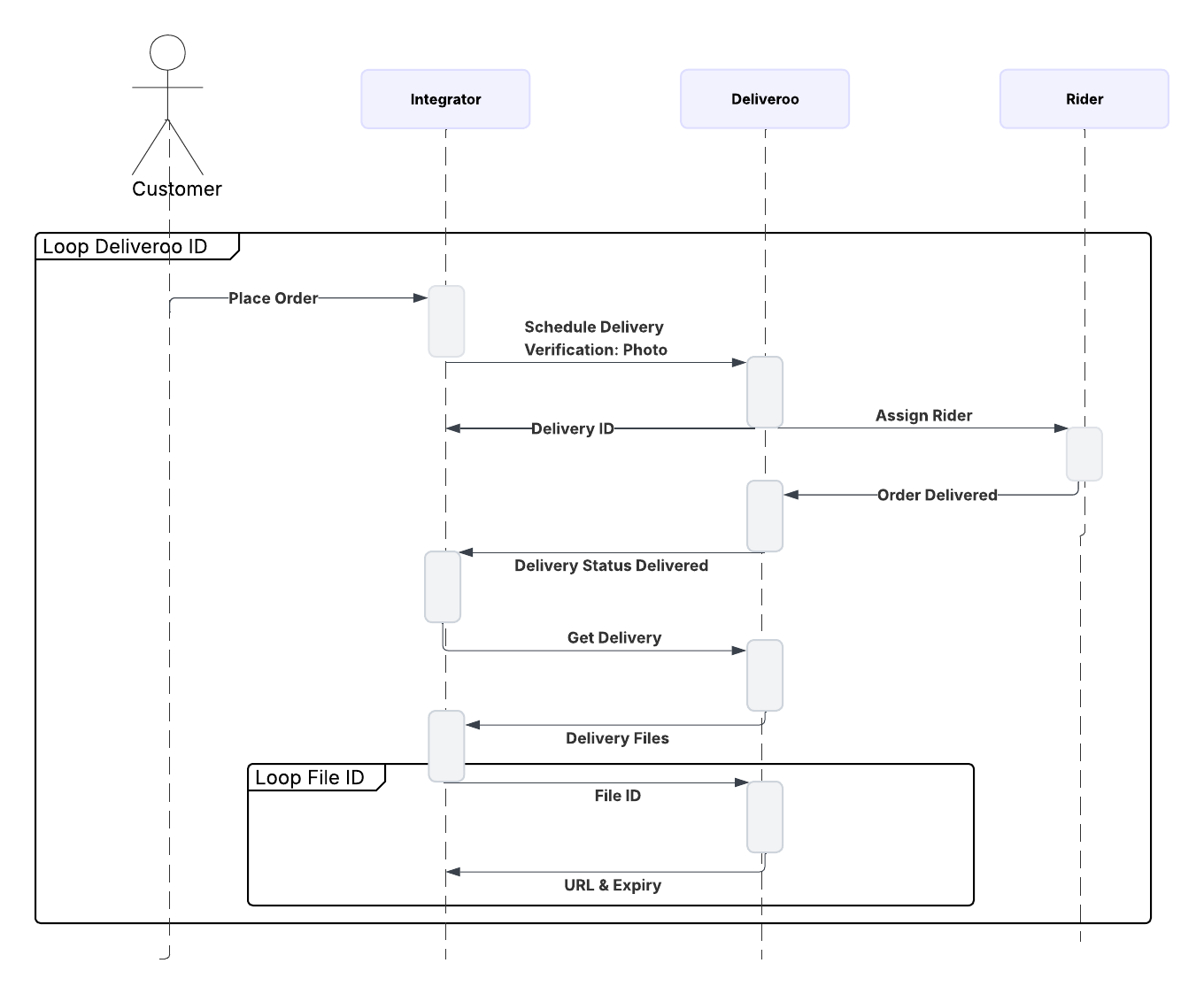 - Deliveroo returns a Delivery ID, which you should store.